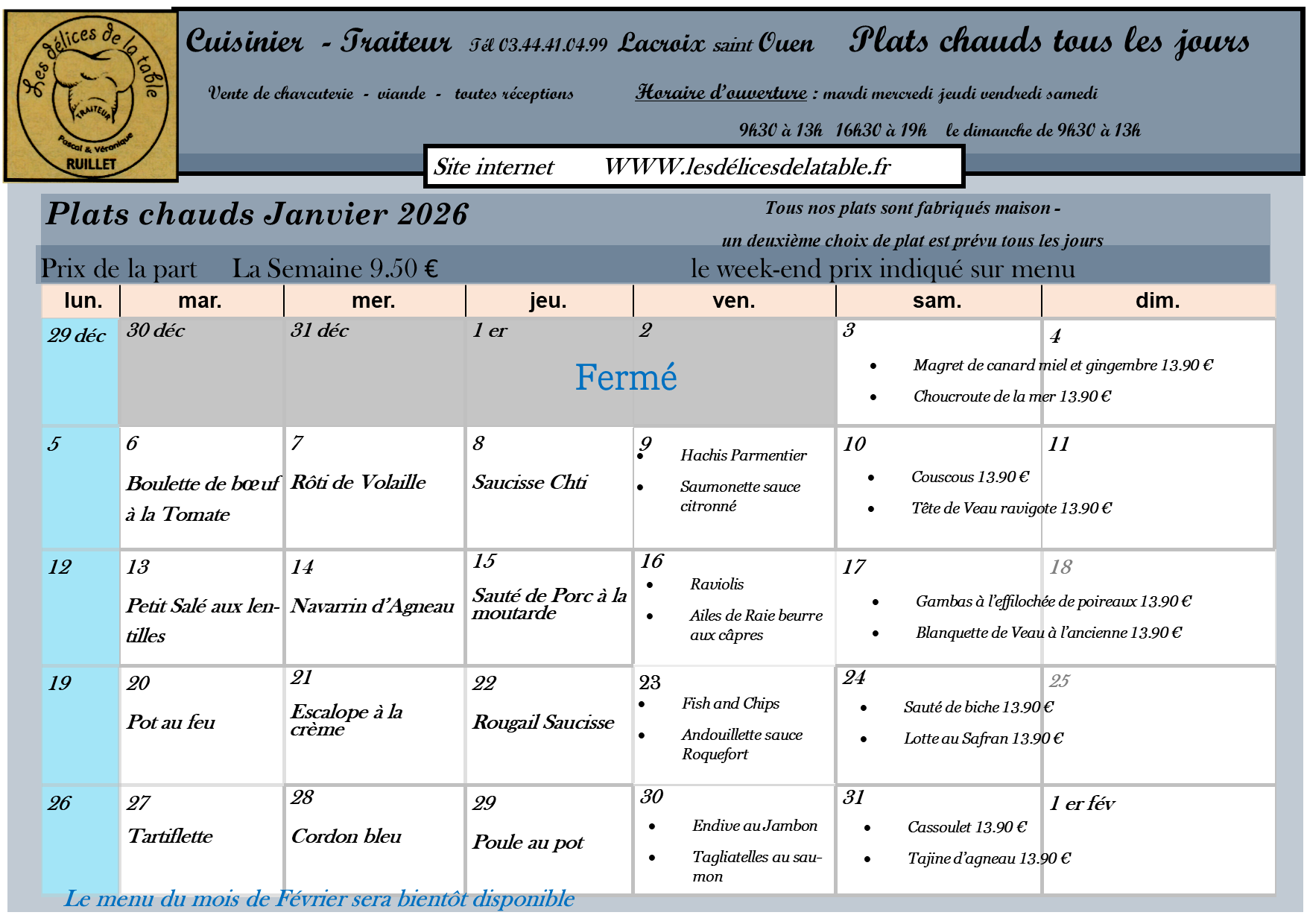 Les Délices de la Table proposent une gamme de plateaux repas (froids et chauds) originaux et savoureux, de fabrication « Maison ».