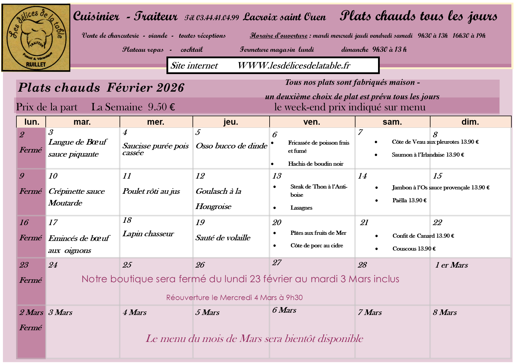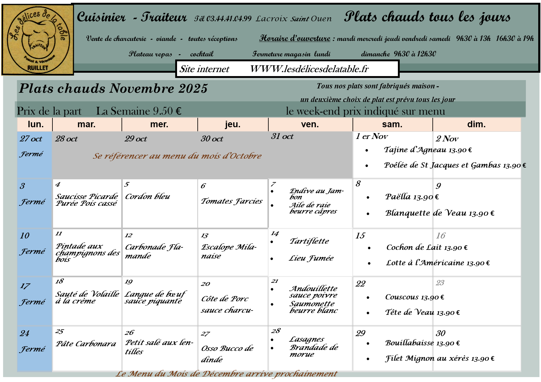 Les Délices de la Table proposent une gamme de plateaux repas (froids et chauds) originaux et savoureux, de fabrication « Maison ».